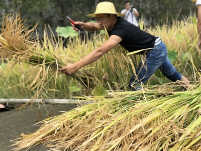 鐮刀、草帽、雨靴、防水服……9月11日,在四川大學(xué)錦城學(xué)院(以下簡稱“川大錦城”)的農(nóng)場里,正值中午,幾十名同學(xué)卻在農(nóng)田里麻利地干起了農(nóng)活,割水稻、打谷子、鋤地……大伙分工明確,忙得熱火朝天。