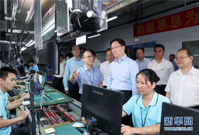 這是9月13日,韓正考察冠捷顯示科技(北海)有限公司。 新華社記者 劉衛(wèi)兵 攝