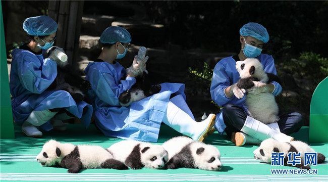 這是9月28日在成都大熊貓繁育研究基地太陽產(chǎn)房拍攝的大熊貓寶寶。 當日,成都大熊貓繁育研究基地為2018年出生的12只新生大熊貓寶寶舉行了一場別開生面的亮相活動。