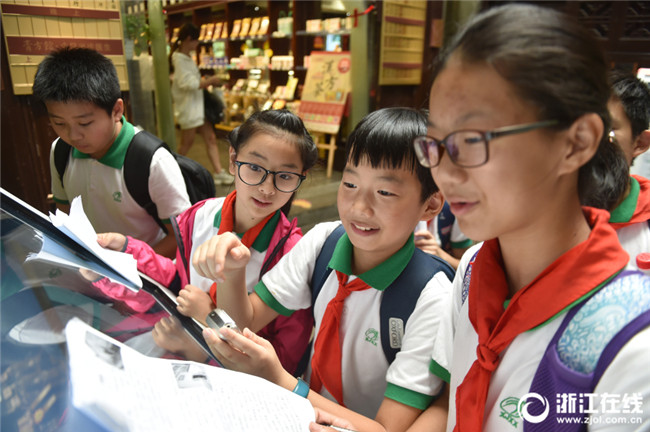 一個(gè)課題小組在清河坊方回春堂了解國醫(yī)國藥文化。