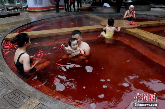 重慶現(xiàn)巨型“麻辣火鍋”溫泉