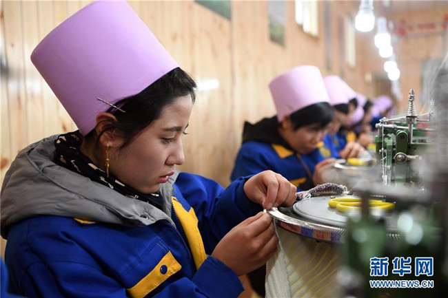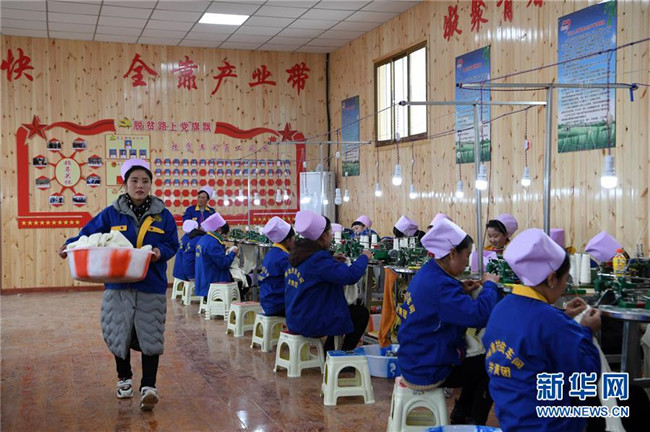 近日,甘肅省臨夏回族自治州東鄉(xiāng)族自治縣大樹鄉(xiāng)“扶貧車間”投入使用,40多名留守婦女在家門口實現(xiàn)就業(yè)。今年以來,共青團臨夏州委積極爭取東西協(xié)作城市廈門市的支持,建立“扶貧車間”,同時組織培訓(xùn)農(nóng)村留守婦女,實現(xiàn)就地就業(yè)增收。新華社記者 范培珅 攝