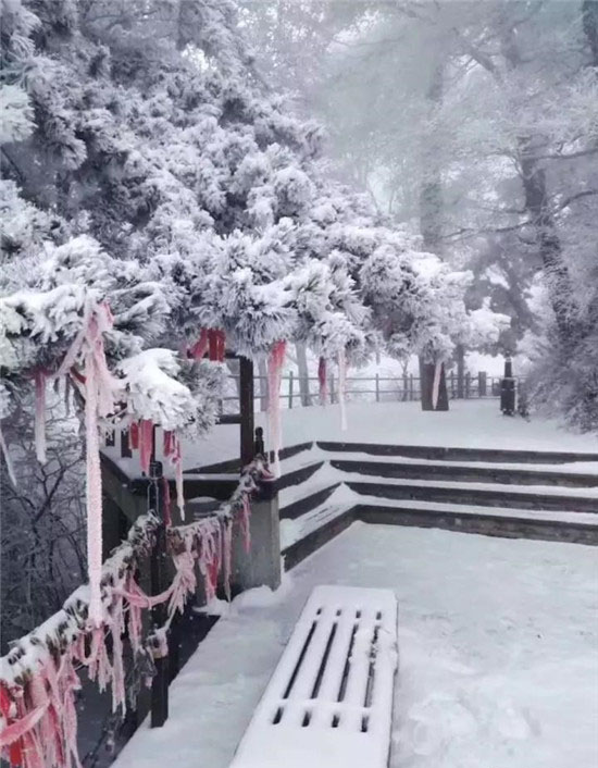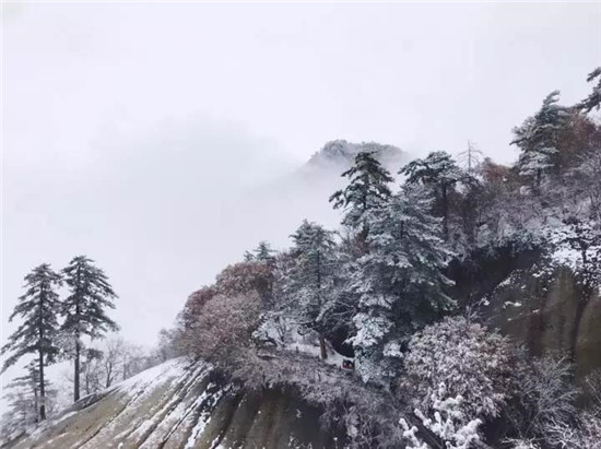 冬季的華山少了夏季的喧鬧,白雪與松檜、陽光與山石就是它最美的景象。每年12月至次年3月是華山的雪季,而前兩天華山已經(jīng)提前下過雪了,整個(gè)山體被白雪覆蓋,樹木、巖石、道觀上都披上一層厚厚的棉衣。走進(jìn)華山仿佛是走進(jìn)了一個(gè)純白的圣潔之地,白色的花崗巖、白色的雪花、白色的樹木…… 在華山,白色也是如此的浪漫唯美。