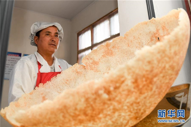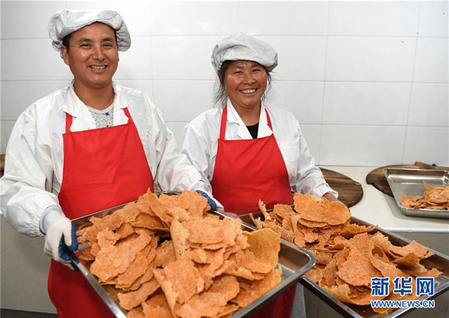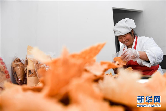 今年49歲的汪明祥和47歲的姚新花是安徽省涇縣黃村鎮(zhèn)沙元村的一對農民夫妻。2013年,汪明祥突發(fā)疾病花光了家里的積蓄,并喪失了一定的勞動能力。2014年,汪明祥一家被確定為建檔立卡貧困戶。為了靠自己的雙手實現脫貧,汪明祥和妻子姚新花在家里開始生產手工鍋巴,雖然收入不高,但是經濟狀況慢慢好轉起來,于2016年順利實現脫貧。 脫貧后的夫妻倆開始琢磨如何進一步發(fā)展自家的手工鍋巴生意。今年,汪明祥和妻子姚新花利用當地扶貧小額貸款和自籌資金創(chuàng)辦的強源鍋巴廠投產。由于口味地道,價格不高,汪明祥家的鍋巴受到市場的歡迎,平均每天生產鍋巴50余斤,日均銷售額400多元。“不等不靠,甩窮帽,我們夫妻倆靠手藝脫了貧,也有信心實現致富。”汪明祥說。新華社記者 劉軍喜攝
