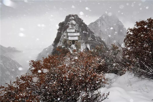 華山在11月下旬進(jìn)入冬季,12月至次年3月是華山雪季。游客可欣賞到難得一見(jiàn)的華山雪景——美麗的霧凇給樹(shù)木、巖石、屋舍都披上一層晶瑩的薄衣,尤其在大雪覆蓋后,山景變成一幅曼妙的白色圖畫(huà),峰上的樹(shù)木和古藤被透明的冰層包裹,極富魅力。