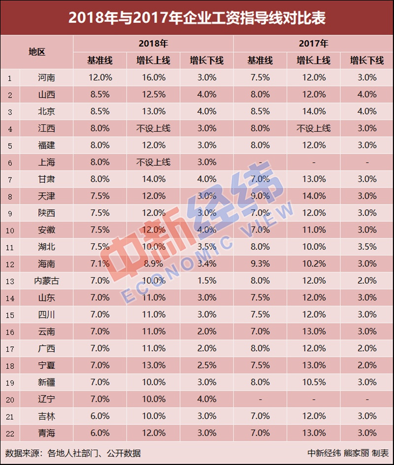據(jù)中新經(jīng)緯客戶端(微信公眾號:jwview)不完全統(tǒng)計(jì),截至12月6日,至少已有河南、山西、北京、江西、福建、上海等22個(gè)省份公布了2018年企業(yè)工資指導(dǎo)線。