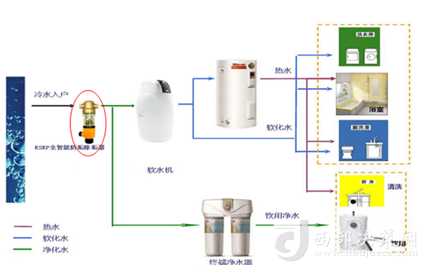 通常安裝在進(jìn)水管道水表后,是對全屋用水的第一道過濾、防垢設(shè)備。可以阻止水體中成垢離子的結(jié)合,并且過濾自來水中的泥沙、鐵銹、大顆粒物質(zhì)。