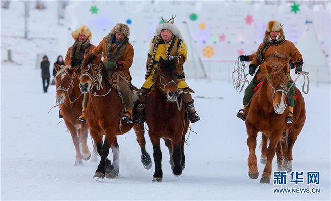 12月26日,馬隊(duì)在“伊薩仁”開(kāi)幕式上表演。 當(dāng)日,內(nèi)蒙古呼倫貝爾市第五屆鄂倫春冰雪“伊薩仁”在鄂倫春自治旗開(kāi)幕。“伊薩仁”是鄂倫春語(yǔ)“集會(huì)”“聚會(huì)”的意思。此次“伊薩仁”期間,將舉行鄂倫春徒步林海穿越、汽車(chē)越野拉力賽、冰雪觀賞、雪上沖浪等活動(dòng),為游客帶來(lái)不一樣的冰雪體驗(yàn)。 新華社發(fā)(丁根厚 攝)