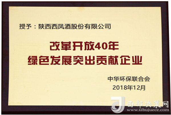 近日,在中華環(huán)保聯(lián)合會(huì)組織的“紀(jì)念改革開放40年中國企業(yè)綠色發(fā)展成就主題活動(dòng)”中,陜西西鳳股份公司因在綠色發(fā)展、生態(tài)文明、環(huán)境保護(hù)、節(jié)能減排等方面的突出成績,榮獲改革開放40年“綠色發(fā)展突出貢獻(xiàn)企業(yè)”殊榮。標(biāo)志著該公司在實(shí)施綠色發(fā)展戰(zhàn)略、生產(chǎn)綠色產(chǎn)品、使用綠色技術(shù)等方面的卓越成果得到國家環(huán)保部門的充分肯定,達(dá)到了企業(yè)經(jīng)濟(jì)效益、社會(huì)效益、環(huán)境保護(hù)效益的有機(jī)統(tǒng)一。