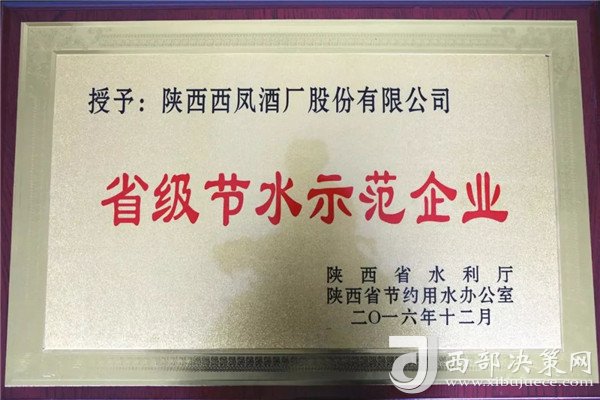 西鳳股份公司榮獲“省級(jí)節(jié)水示范企業(yè)”稱號(hào)