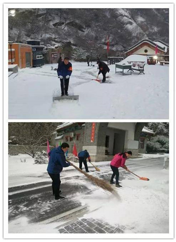 2月9日晚,一場大雪突降華山景區(qū),當(dāng)工作人員與游客一起沉浸在新年的喜悅氛圍時,華山景區(qū)悄然鋪上了一層厚厚的積雪。2月10日早6時,華旅集團(tuán)通過多渠道號召全體員工在各自崗位迅速開展掃雪除冰工作。雪情就是命令,來不及欣賞新年首場雪景,廣大員工扛起掃把鐵鍬等掃雪工具,第一時間奔赴“戰(zhàn)場”,全力確保景區(qū)恢復(fù)運(yùn)營。