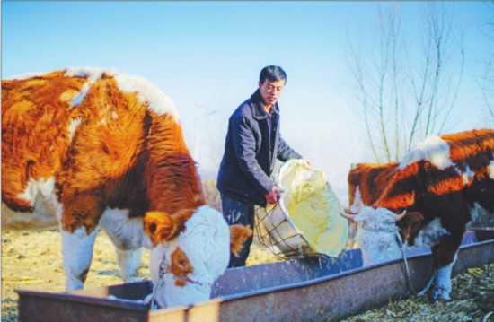 不懂技術(shù)他就向村里有養(yǎng)殖經(jīng)驗(yàn)的能人虛心請(qǐng)教,為了節(jié)約飼養(yǎng)成本,每年5月份到10月份,路來寶都要親自上山放牛。提起養(yǎng)牛,路來寶打開了話匣子:“都說養(yǎng)牛辛苦,放了牛我才知道啥叫辛苦。每天四五點(diǎn)鐘,天不亮就出門,一走就走一天,牛吃飽了,我卻還餓著肚子。等它們回棚休息了,我還要貪黑清理牛舍,做防疫。我賒的那兩頭牛都是帶著‘肚子’來的,眼看著肚子越來越大,我這心也懸了起來。就在母牛下犢的那個(gè)晚上,我成宿蹲守在牛棚里,生怕有什么閃失。當(dāng)我看到牛犢出生的那一刻,別提多高興了,我知道這么久的努力與等待終于迎來了回報(bào)。”