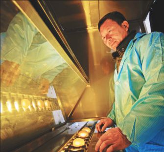 每枚鴨蛋都要經(jīng)過(guò)嚴(yán)格檢查。 文/攝本報(bào)記者劉心楊