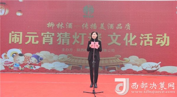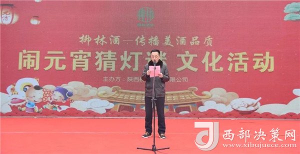 陜西柳林酒業(yè)有限公司副總經(jīng)理周峰發(fā)表講話(huà)并向鳳翔父老送上新春祝福和節(jié)日的問(wèn)候。“三陽(yáng)開(kāi)國(guó)泰,美哉柳林酒。今天是正月十五,首先我代表柳林酒業(yè)董事長(zhǎng)付小銅先生、總經(jīng)理柳林先生及全體員工給現(xiàn)場(chǎng)的父老鄉(xiāng)親、朋友們拜個(gè)晚年,祝各位家庭好、事業(yè)好、身體好心情好、運(yùn)氣好、福氣好、財(cái)氣好、愛(ài)情好、朋友好、新的一年一切都好!柳林酒業(yè)主辦的以傳播柳林美酒品質(zhì)為主題的“鬧元宵有獎(jiǎng)猜燈謎文化活動(dòng)”,在此,對(duì)前來(lái)的各位父老鄉(xiāng)親,各界朋友表示衷心的感謝。本次猜謎活動(dòng)獎(jiǎng)品總價(jià)值15萬(wàn)元,共設(shè)1000條謎語(yǔ),只要猜中謎底,關(guān)注“柳林酒業(yè)”,即可獲得獎(jiǎng)品?,F(xiàn)場(chǎng)更有國(guó)家級(jí)評(píng)酒大師親臨現(xiàn)場(chǎng),品柳林美酒,共同傳播美酒文化和歌舞表演環(huán)節(jié),相信大家一定會(huì)不虛此行,度過(guò)一個(gè)難忘的元宵佳節(jié)。