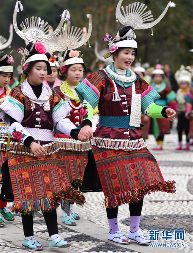 3月16日,在丹寨縣南皋鄉(xiāng)清江村,身著節(jié)日盛裝的苗族姑娘在跳木鼓舞。 當(dāng)日,貴州省黔東南苗族侗族自治州丹寨縣南皋鄉(xiāng)清江村清江村舉行翻鼓節(jié)。翻鼓節(jié)是當(dāng)?shù)孛缱宕迕裼哟焊絹?lái)的民俗節(jié)日,至今已有近600年歷史,每年農(nóng)歷二月舉行。 新華社記者 楊文斌 攝
