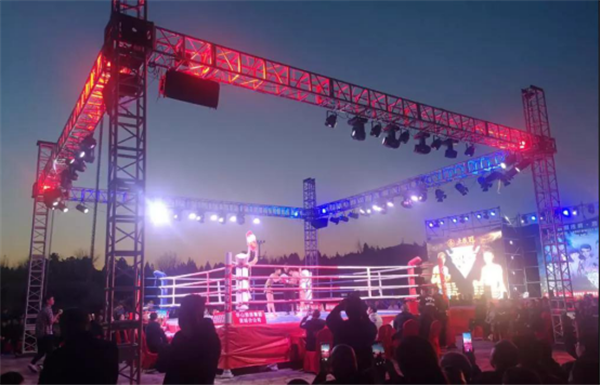 在晚間蒲城分會場還進行了一場峨眉傳奇之西北王格斗精英賽,現(xiàn)場氣氛緊張、人氣非凡。