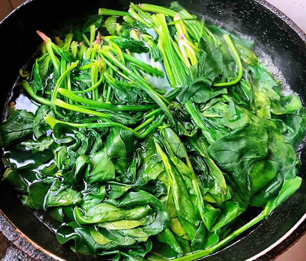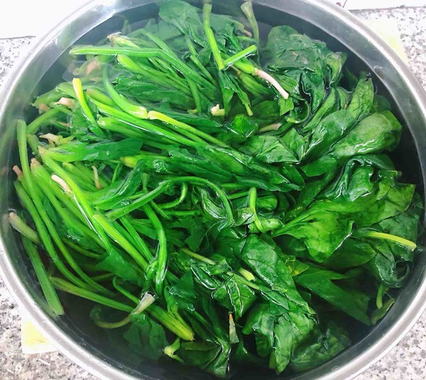 2.鍋中燒開水放入菠菜焯水至菠菜剛剛變色即可時(shí)間不可過長