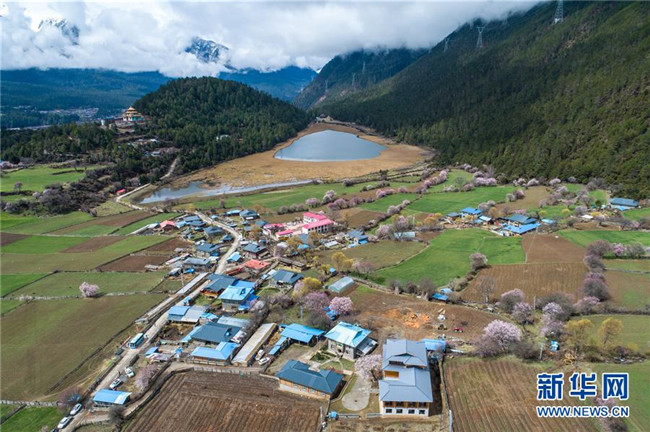 這是波密縣古鄉(xiāng)嘎朗村的田園風(fēng)光(4月2日無人機拍攝)。新華社記者 李鑫 攝