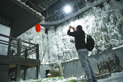 除了眾多親子游客,不少年輕人也特地前來。中影基地6號棚的江南水鄉(xiāng)拍攝小景跟前,聚集了許多年輕人圍觀一對青年體驗拍攝《大話西游》中的經(jīng)典場景。全副武裝扮演至尊寶的是來自北京吉利學(xué)院的學(xué)生張江。“曾經(jīng),有一份真誠的愛情放在我面前,我沒有珍惜,等到我失去的時候才后悔莫及……”當(dāng)背出了至尊寶的經(jīng)典臺詞時,張江依然覺得“很尬”,難以入戲。導(dǎo)演趕緊上來給他說戲,“這時候劍距離你的喉嚨只有0.01公分,你要仰起頭……”這當(dāng)口,飾演紫霞仙子的女同學(xué)已經(jīng)拿不住劍,手腕松了下來。一個小時過去了,這一條還是沒能過,只好休息一會兒。“人生第一次嘛,體驗體驗。”張江說。