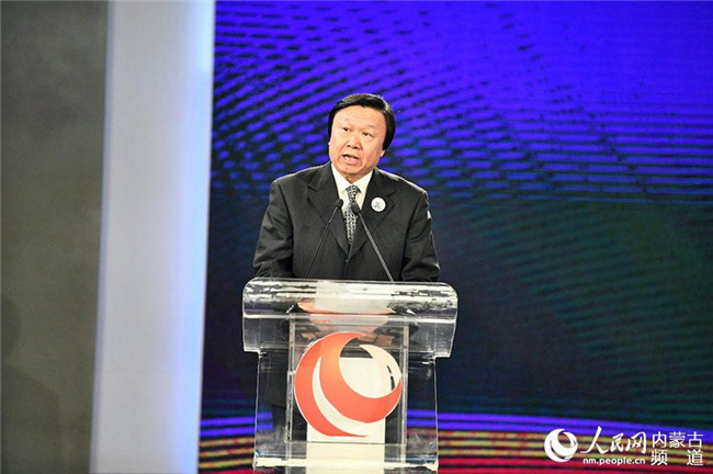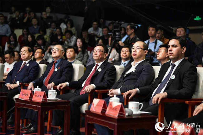 內(nèi)蒙古自治區(qū)黨委常委、宣傳部部長(zhǎng)白玉剛(左三),人民網(wǎng)黨委書記、董事長(zhǎng)、總裁葉蓁蓁(右二)等領(lǐng)導(dǎo)和嘉賓出席發(fā)布會(huì)。