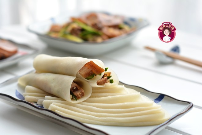 10.蒸好的餅從鍋里端出來,趁熱將其一張張分開,用濕布蓋上可防止水份蒸發(fā);吃時可卷上菜或肉,美味又開心。