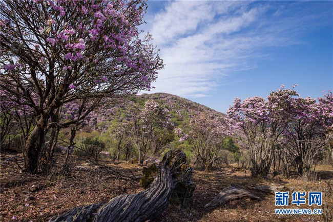 4月24日拍攝的龍頭山的野生杜鵑花。 近日,四川省攀枝花市鹽邊縣龍頭山十余萬畝野生杜鵑花盛開,吸引省內(nèi)外游客前來登山賞花。 龍頭山位于四川省攀枝花市鹽邊縣北部的紅寶苗族彝族鄉(xiāng)境內(nèi),這里的野生杜鵑花花期為2月至5月。 新華社記者 江宏景 攝