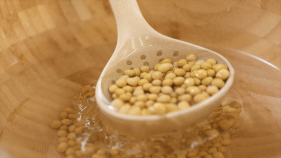 2.開小火炒20分鐘左右至豆香四溢。將炒好的黃豆倒入碗中自然冷卻。(炒過的黃豆出鍋時(shí),小心燙手。)