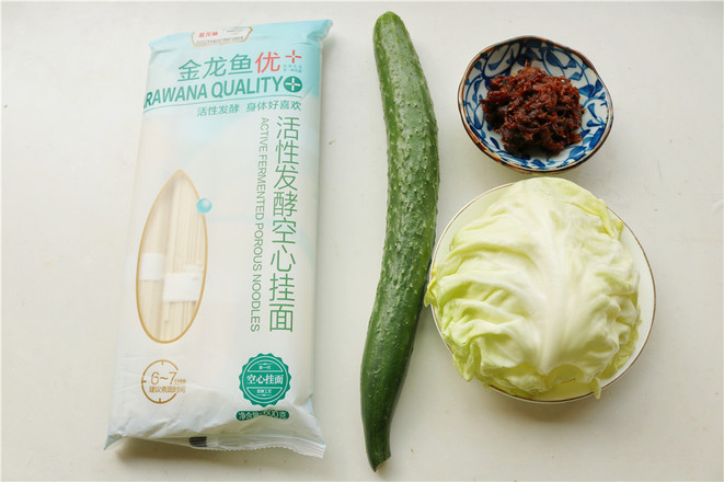 主料:金龍魚(yú)活性發(fā)酵空心掛面100克 圓白菜50克 黃瓜1根