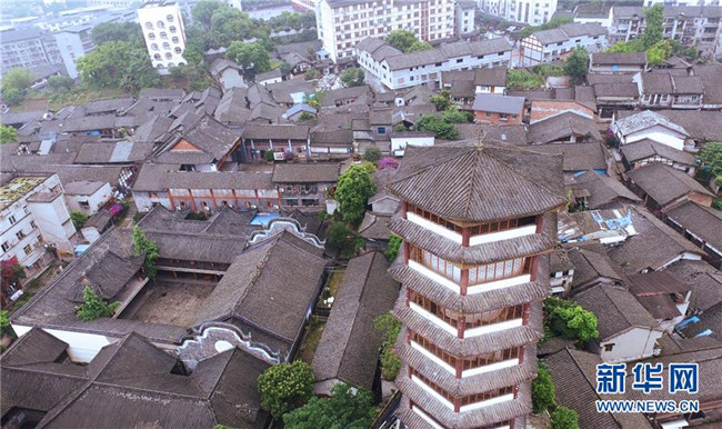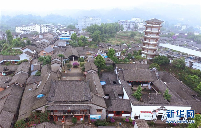 這是5月14日無(wú)人機(jī)拍攝的松溉古鎮(zhèn)。