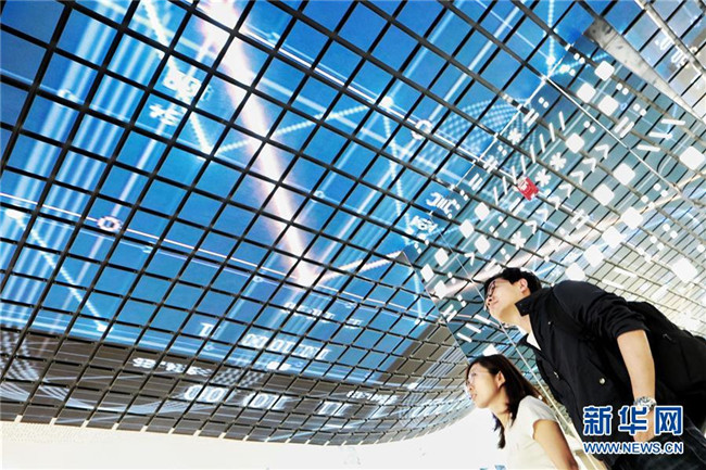 5月22日,參觀者在國家大數(shù)據(jù)(貴州)綜合試驗區(qū)展示中心內(nèi)參觀。新華社記者 歐東衢 攝