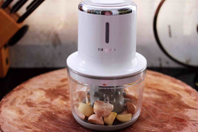 5.大蒜放入東菱無(wú)線(xiàn)絞肉機(jī)里,去皮后取出備用。