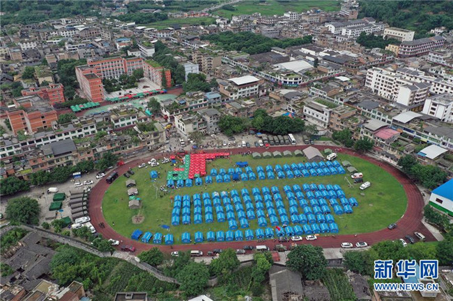 6月18日無人機拍攝的長寧縣雙河中學安置點。 新華社發(fā)(曾朗 攝)