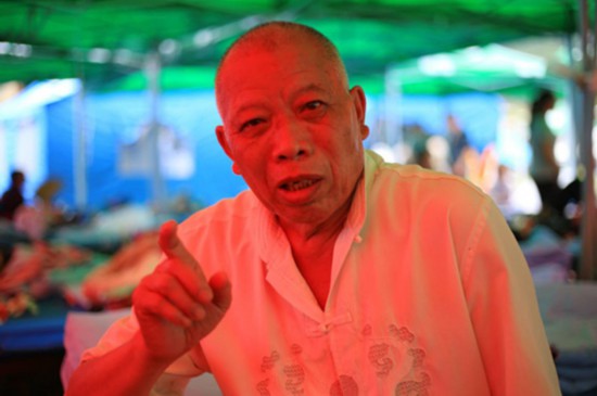雙河鎮(zhèn)大水村70歲大爺李國付講述震后故事。(人民網(wǎng)朱虹 攝)