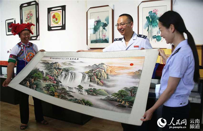 沉下心來學(xué)習(xí)刺繡的王陸芬朝著自己的小目標努力。白天,她向村里的老人們學(xué)習(xí)刺繡技法,學(xué)習(xí)構(gòu)圖、畫圖,晚上就在家里刻苦練習(xí)。一有機會,王陸芬就出去考察學(xué)習(xí)。“有一年去上??疾欤吹剿麄兊拇汤C還沒有我做的精細,沒想到價格還很貴。”這讓王陸芬堅定了自己的想法,在王陸芬的帶動下,白沙坡村成立了刺繡協(xié)會,協(xié)會一開始只有26人。2014年2月,技藝日臻成熟的王陸芬成立了“紙藝刺繡農(nóng)民專業(yè)合作社”,2015年成立硯山縣華韻手工刺繡有限公司。