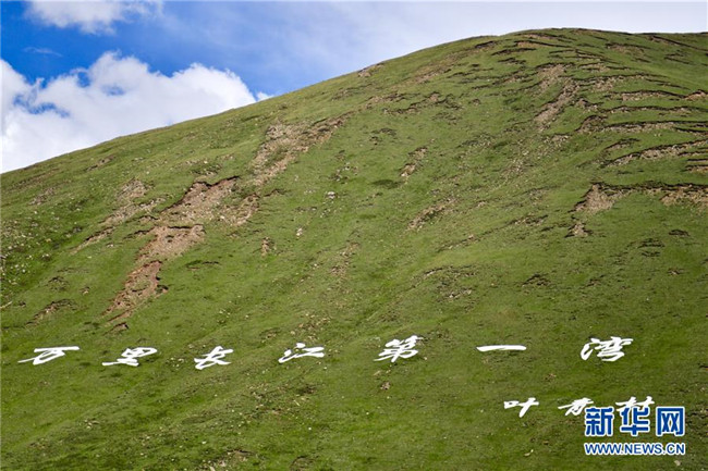 這是葉青村附近山崗上“萬里長江第一灣”的標識(6月20日攝)。新華社記者 張龍 攝