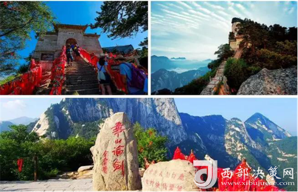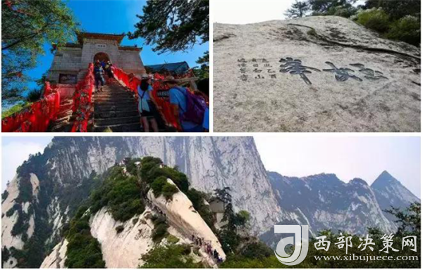 華山著名景區(qū)多達(dá)210余處,有凌空架設(shè)的長空棧道,三面臨空的鷂子翻身,以及在峭壁絕崖上鑿出的千尺幢、百尺峽、老君犁溝等,其中華岳仙掌被列為關(guān)中八景之首。