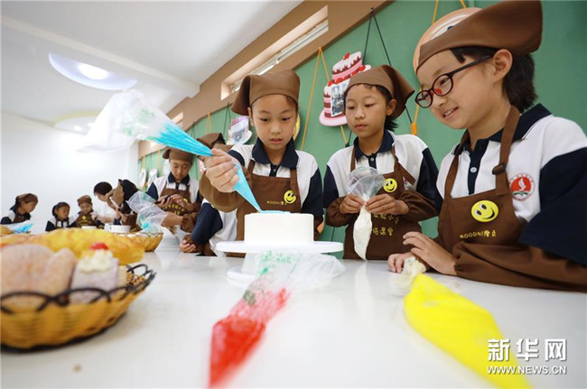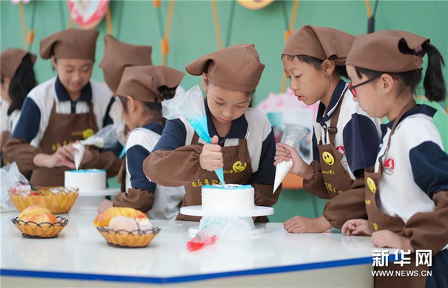 6月26日,內(nèi)丘縣實驗小學(xué)學(xué)生在烘焙課堂制作糕點。 新華社記者 朱旭東 攝