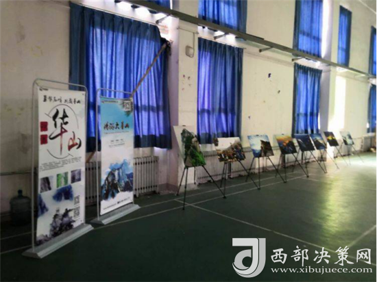 “演繹經(jīng)典”校園活動(dòng)開場(chǎng)前,舞臺(tái)前方的投影大屏循環(huán)播放華山風(fēng)光宣傳片,奇險(xiǎn)峻秀的大美華山風(fēng)光引得現(xiàn)場(chǎng)觀眾贊嘆不絕。舞臺(tái)下方分別通過華山風(fēng)光攝影展、活動(dòng)展架等形式展示了華山四季的絕美風(fēng)光,吸引眾多師生駐足觀看。