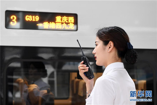 7月11日,乘務(wù)員在G319次列車上做發(fā)車前的準(zhǔn)備工作。當(dāng)日,重慶至香港直達(dá)高鐵正式開(kāi)通,此次首發(fā)的G319次復(fù)興號(hào)列車運(yùn)行速度350km/h,沿途經(jīng)停遵義、貴陽(yáng)東、桂林西、肇慶東、廣州南和深圳北站。列車由重慶西站至香港西九龍站全程運(yùn)行需7小時(shí)37分鐘,全程票二等座票價(jià)為660元。目前內(nèi)地與香港聯(lián)通的高鐵車站已增加到58個(gè)。新華社記者唐奕攝