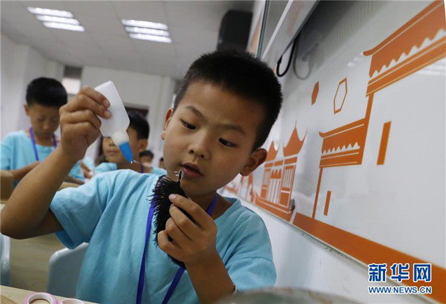 位于上海嘉定區(qū)南翔鎮(zhèn)的南翔工業(yè)開發(fā)區(qū),有許多來自外地的工人。暑假期間,許多小朋友從老家趕來開發(fā)區(qū)跟爸爸媽媽團聚。這些“小候鳥”的爸爸媽媽白天要上班,無暇照顧孩子,上海南翔工業(yè)開發(fā)區(qū)實業(yè)有限公司職工親子工作室從7月初到8月下旬,在工作日為“小候鳥”們安排了豐富多彩的活動,包括做手工、學(xué)畫畫、練武術(shù)等,讓“小候鳥”們度過一個文武雙全的暑假生活。 新華社記者 方喆 攝