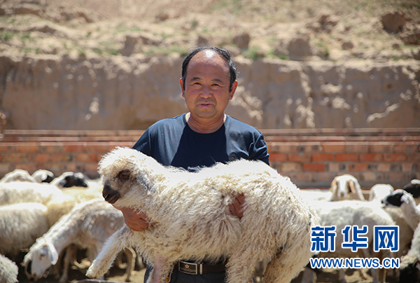 一位村民向記者展示自家養(yǎng)殖的灘羊(7月4日拍攝)。 新華網 肖寒 攝