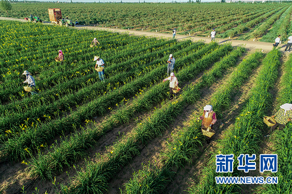 7月4日,紅寺堡區(qū)太陽山鎮(zhèn),村民正為采摘黃花菜奔忙。 新華網發(fā)(祁瀛濤 攝)