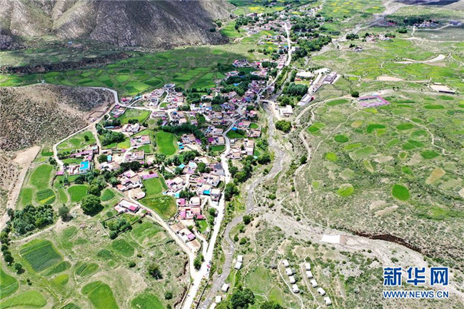 鳥瞰達東村景區(qū)(7月20日無人機拍攝)。西藏拉薩市柳梧鄉(xiāng)達東村是一個千年古村,也曾是一個貧困村。近年來,依托秀美的自然風(fēng)光、深厚的歷史文化和淳樸的風(fēng)土人情,當(dāng)?shù)卣畬嵤┪幕糜萎a(chǎn)業(yè)精準(zhǔn)扶貧,使達東村蛻變成為鄉(xiāng)村旅游勝地。新華社記者普布扎西攝
