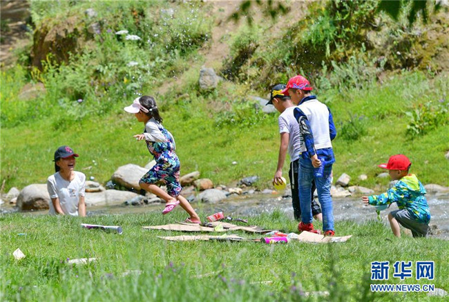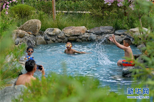 孩子們在達東村景區(qū)溫泉里嬉戲(7月20日攝)。西藏拉薩市柳梧鄉(xiāng)達東村是一個千年古村,也曾是一個貧困村。近年來,依托秀美的自然風(fēng)光、深厚的歷史文化和淳樸的風(fēng)土人情,當(dāng)?shù)卣畬嵤┪幕糜萎a(chǎn)業(yè)精準(zhǔn)扶貧,使達東村蛻變成為鄉(xiāng)村旅游勝地。新華社記者張汝鋒攝
