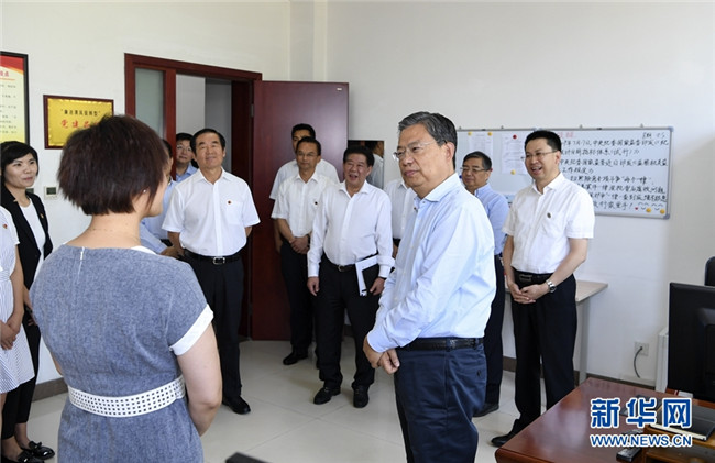 7月22日至24日,中共中央政治局常委、中央紀(jì)委書記趙樂際到寧夏調(diào)研。這是7月22日,趙樂際在石嘴山市紀(jì)委監(jiān)委機(jī)關(guān)實(shí)地了解紀(jì)檢監(jiān)察工作和主題教育開展情況。 新華社記者 張領(lǐng) 攝
