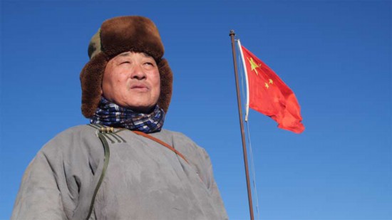 在阿迪亞家西南方向一片朝東的斜坡上,紅色磚塊擺出的“中國”兩個(gè)字格外引人注目。那是2008年阿迪亞親手?jǐn)[出來的。娜仁其其格清楚地記得,當(dāng)年夏季的一天,阿迪亞早早出門,一個(gè)多小時(shí)后匆匆跑回家中把正熬奶茶的她拉出屋子,“你看那是什么?”娜仁其其格順著望去,那里多了“中國”兩個(gè)大字。