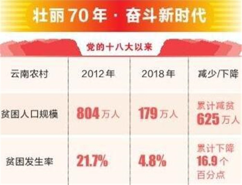 隨著精準(zhǔn)扶貧的深入推進(jìn),全省農(nóng)村貧困人口大幅減少,貧困發(fā)生率持續(xù)下降。國家統(tǒng)計局云南調(diào)查總隊發(fā)布的數(shù)據(jù)顯示:黨的十八大以來,云南農(nóng)村貧困人口規(guī)模從2012年804萬人減少到2018年179萬人,累計減貧625萬人,年均減貧104萬人;農(nóng)村貧困發(fā)生率從2012年的21.7%,持續(xù)下降到2018年的4.8%,累計下降16.9個百分點(diǎn),年均下降2.8個百分點(diǎn)。2018年全省貧困地區(qū)農(nóng)村居民人均可支配收入9595元,是2012年的2倍,年均增長12.4%。貧困地區(qū)農(nóng)村居民收入增速持續(xù)高于全省農(nóng)村平均增速。