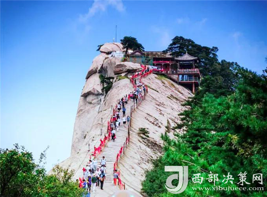 西北絕崖千丈,似刀削鋸截,其陡峭巍峨、陽(yáng)剛挺拔之勢(shì)是華山山形之代表,西峰為一塊完整巨石,渾然天成,海拔2082米,是華山最秀麗險(xiǎn)峻的山峰,又因峰巔有巨石形狀好似蓮花瓣,古代文人多稱其為蓮花峰、芙蓉峰。