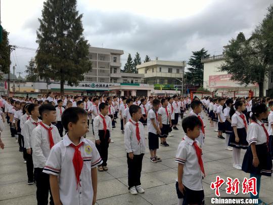 9月2日,金寨縣希望小學開學的第一天,學校舉行升旗儀式?!垙姟z