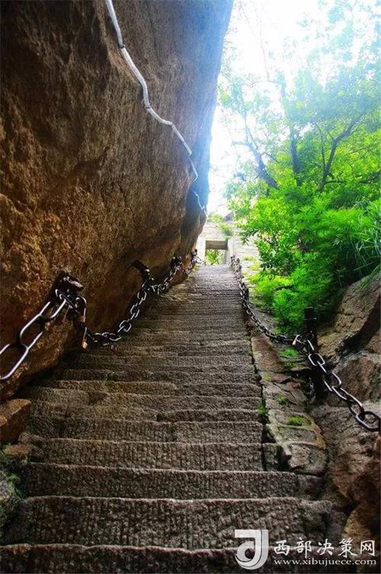 “自古華山一條路”就是當(dāng)?shù)厝怂f的“華山峪”登山道,包括了自古以來華山唯一登山道上的沿途各景點(diǎn),連起來就是通常所說的“自古華山一條路”。登華山最大的樂趣即為登山本身,一邊克服種種山路的艱險(xiǎn),一邊移步換景觀賞沿途風(fēng)光,所以這條經(jīng)典的登山路線至今仍然是登華山的最佳選擇。